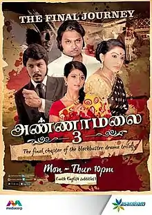 Annamalai 3 (Tamil: அண்ணாமலை 3) is an Indian Tamil-language soap opera that aired Monday through Thursday on MediaCorp Vasantham from 28 December 2015 to 31 March 2016 at 10:30PM SST for 52 episodes.