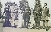 ![]() Publicity still with, from left to right, Dona Drake, Dan Duryea, Ann Blyth, Fredric March, Florence Eldridge, Edmond O'Brien, and John Dall | |
