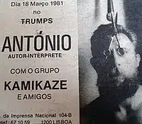 António Joaquim Rodrigues Ribeiro, (3 December 1944 – 13 June 1984) was a Portuguese singer and songwriter. Despite his short-lived career due to his premature death at the age of thirty-nine, using the stage name of António Variações, he became one of the most culturally significant performing artists of recent Portuguese history. His recorded works blended contemporary music genres with traditional Portuguese rhythms and melodies, creating music which for many is symbolic of the liberalization that occurred in Portuguese society after the Carnation Revolution of 1974. The original and provocative nature of his recorded works has led to him being widely recognized as one of the most innovative artists in the recent history of Portuguese popular music.