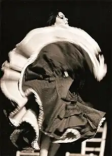 Antonia Singla Contreras was born in 1948 in the neighborhood Somorrostro de la Barceloneta, in Barcelona, Spain.[2] At the time of her birth, this neighborhood was a shanty town and a romani community.[3] A few days after her birth she was in pain, perhaps caused by meningitis, and lost her hearing.[2] In 1968, she made a partial recovery from her medical condition.[1] While she was growing up, La Singla learned to dance rumba, fandango, bulerías and flamenco with considerable skill.[4] Singla began to dance by watching her mother clapping, absorbing the rhythm and turning it into a really remarkable dance full of emotions. It is said that she did not speak fluently until the age of 16.[4]