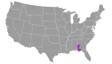 The species is endemic to Alabama, Florida, and Georgia, in the Southeastern United States. Its natural habitats are temperate forests, intermittent rivers, and freshwater springs.[1]