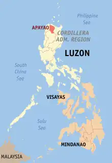 - ↑ Republic Act No. 7878 (February 14, 1995), "An Act Converting the Sub-provinces of Kalinga and Apayao into Regular Provinces to be Known as the Province of Kalinga and the Province of Apayao, Amending for the Purpose Republic Act No. 4695", Official Gazette, Congress of the Philippines, retrieved March 3, 2021