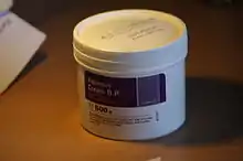 British researchers found evidence that using the cream to moisturize areas affected by eczema may actually aggravate the condition.[2] They suggested this was due to skin-thinning effects of a detergent sodium lauryl sulfate. The National Eczema Society recommends alternatives such as white soft paraffin wax or other types of emollient without such a high content of sodium lauryl sulfate.[3]