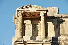 On top of the attic, three bases remain, which originally supported statues of the members of the imperial family.