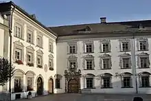 Resigned to the impossibility of marriage, Eleanor, joined by her older sister Archduchess Maria Christina (who returned to her homeland after her disastrous marriage), decided to retire from the world. The sisters chose the Haller Convent (Haller Damenstift) in Hall in Tirol, founded by their paternal aunt Archduchess Magdalena of Austria. Ferdinand II gave the sisters a small allowance to use: for Maria Christina, silverware of 11,000 guilders and for Eleanor, 2,000 imperial pfennigs. Upon entering the convent, the Archduchesses renounced all their titles and became mere novices.[10]