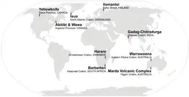 Onverwacht Group[35] 3445 ± 3[35] Barberton Kaapvaal Craton South Africa