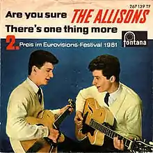 "Are You Sure?" is a song by British pop duo The Allisons, that represented the United Kingdom at the Eurovision Song Contest 1961, performed in English.