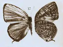 - ↑ Seitz, A., 1912-1927. Die Indo-Australien Tagfalter. Theclinae, Poritiinae, Hesperiidae. Grossschmetterlinge Erde 9: 799-1107, pls. 138-175
