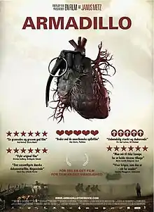Armadillo is a 2010 Danish documentary film about Danish soldiers in the War in Afghanistan directed by Janus Metz. The film follows a group of soldiers from the Guard Hussars Regiment who are on their first mission in Helmand Province at a forward operating base near Gereshk named FOB Armadillo. The film premièred at the Cannes Film Festival in 2010. It was awarded the Grand Prix de la Semaine de la Critique.