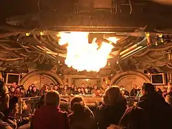 After the pre-show, guests walked through a hallway that led to a round chamber, where the main show took place. It resembled the set of the Station's main deck. As the show started with the director's call of "Action", several scenes ensued. Windows opening either on Space or on Earth let guests witness the arrival of a meteorite rain. As it hit the station, several dysfunctions occurred, including lights flickering, gas bursting into the cabin, the ceiling threatening to collapse and incandescent rocks crossing the room. At one point, the build-up of pressure in the pipes caused a part of the wall to be pulled out, letting air escape until a tight door closed. Finally, as guests could see the main meteor arriving on them, a powerful explosion occurs and lights go out. A voice calling "Cut!" closes the show. On the way out, guests can spot some props.