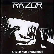 Armed And Dangerous is the debut EP release by Canadian speed/thrash metal band Razor, released in 1984. This EP was limited to 1,200 copies on vinyl and is very rare. This album is dedicated to the memory of Paul Chapman (1964-1983).