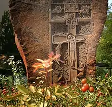 The earliest works of 19th-century Serbian language reformer Vuk Stefanović Karadžić were published in Vienna by a printing house of Armenian Mechitarists. The Mechitarists also published the works of other Serb authors. In total, they printed 37 books and brochures, including The Mountain Wreath by Montenegrin Prince-Bishop Petar II Petrović-Njegoš.[2] A khachkar (Armenian cross-stone), 3 metres (9.8 ft) high and made of volcanic rock, stands at the entrance of the Church of the Archangel Gabriel in the Belgrade municipality of Zemun. The monument was erected in 1993, and it commemorates the Serbian pilots who perished in a plane crash in 1988 while transporting humanitarian aid to Armenia after the country was struck by a catastrophic earthquake.[6]