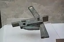It's clear from surviving inventory lists in Gansu and Xinjiang that the crossbow was greatly favored by the Han dynasty. For example, in one batch of slips there are only two mentions of bows, but thirty mentions of crossbows.[36] Crossbows were mass-produced using material such as mulberry wood and brass; a crossbow in 1068 could pierce a tree at 140 paces.[37] Crossbows were used in numbers as large as 50,000 starting from the Qin dynasty and upwards of several hundred thousand during the Han.[38] According to one authority the crossbow had become "nothing less than the standard weapon of the Han armies" by the second century BC.[39] Han era carved stone images and paintings also contain images of horsemen wielding crossbows. Han soldiers were required to pull an "entry level" crossbow with a draw-weight of 76 kg/168lb to qualify as an entry level crossbowman,[40] while it was claimed that a few elite troops were capable of bending crossbows by the hands-and-feet method, with a draw-weight in excess of 340 kg/750lb.[41][42]