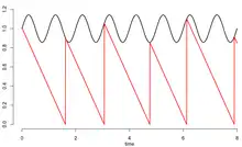 In this model, a phase-locking of would mean that is reset exactly times every periods of the sinusoidal . The rotation number, in turn, would be the quotient .[7]