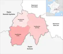 - ↑ "Arrondissement d'Aurillac (151)". INSEE. Retrieved 2019-09-27.