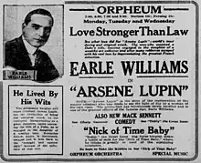 Arsene Lupin is a lost[1] 1917 American mystery film directed by Paul Scardon and starring Earle Williams, Brinsley Shaw and Henry Leone. It based on the character of the French gentleman thief Arsene Lupin.[2][3]