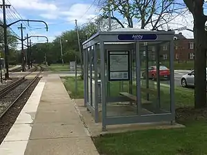 Ashby station is a stop on the RTA Blue Line in Shaker Heights, Ohio, located in the median of Van Aken Boulevard at its intersection with Ashby Road, after which the station is named.