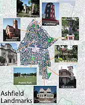 Location map of selected Ashfield landmarks