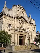 The Baptists held their first service in the School of Arts building on the corner of Liverpool Road and Holden Street. After building a small church further down Holden Street in 1886, they returned to the School of Arts in 1903 which then became known as the Baptist Tabernacle. In 1937, they sold the building, which was knocked down and replaced with a cinema, and moved to their current site on the corner of Holden and Norton Streets. It is Gothic in style with a landmark tower, an impressive street facade and a sympathetically designed adjoining hall.[29]