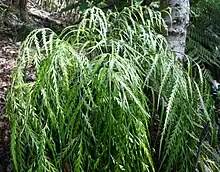 Asplenium flaccidum is a species of fern in the family Aspleniaceae. The plant common name is drooping spleenwort or weeping spleenwort, and the species name flaccidum derives from the Latin root meaning drooping.[1] An example occurrence of A. flaccidum is within a Nothofagus-Podocarp forest at Hamilton Ecological District on New Zealand's North Island in association with other fern species understory plants, crown fern, Blechnum discolor being an example.[2]