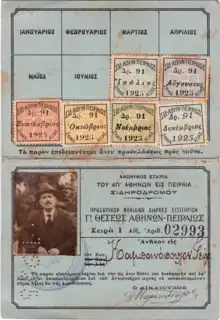 In 1926 the SAP S.A. was bought by the Power and Traction Finance Ltd and renamed Ellinikoi Ilektrikoi Sidirodromoi (E.I.S., Greek: Ελληνικοί Ηλεκτρικοί Σιδηρόδρόμοι or Greek: Ε.Η.Σ., translated as Hellenic Electric Railways).[2] In 1926 the sister company Ilektriki Etaireia Metaforon or H.E.M., also part of Power Group, took over the 1,000 mm (3 ft 3+3⁄8 in) metre gauge Lavrion Square-Strofyli railway. This line was eventually converted to standard gauge, double track and became an extension of the existing line, reaching Attiki in 1948 and Kifissia in 1958.