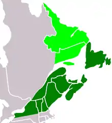 The boundaries defined by the Atlantic Institute for Market Studies broadly echo the Atlantic Northeast, incorporating Upstate New York roughly north of I-90 (or the Erie Canal), Vermont, New Hampshire, Maine, New Brunswick, Nova Scotia, Prince Edward Island, the island of Newfoundland, and Quebec on the south shore of the Saint Lawrence Seaway. The inclusion of Labrador, and thus the entirety of Newfoundland and Labrador, is unsettled. Some organization maps also include the region of Quebec directly south of Labrador, but this has not been elaborated on.
