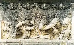 Works that were widespread in the provinces were funeral monuments decorated with reliefs, where the client's social status, businesses and public services were highlighted (as in the Funerary Monument of Lusius Storax). The portraits in these works are almost always generic, without real individualized details. As a result, it is often useless to try to date them based on the hairstyles and styles of the clothes depicted in the art.