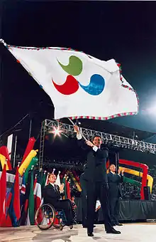 As representative for the next host city, Michael Knight, the New South Wales Minister for the Olympics, was presented with an IPC flag during the closing ceremonies.[1] The success of the Atlanta games would continue on with the games being locked in for Sydney for the 2000 Sydney Paralympics.
