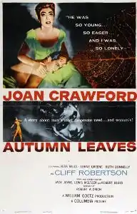 Autumn Leaves is a 1956 American psychological drama film directed by Robert Aldrich and starring Joan Crawford in an older woman/younger man tale of mental illness. The film was distributed by Columbia Pictures. The screenplay was written by Jean Rouverol and Hugo Butler, though it was credited to Jack Jevne (serving as a front), since Rouverol and Butler were blacklisted at the time of the film's release.