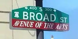 Avenue of the Arts is a city-designated arts cultural district[1] on a segment of Broad Street in Philadelphia, Pennsylvania, United States that includes many of the city's cultural institutions, most notably the theater district south of City Hall. The designation can be found as far south as Washington Avenue and as far north as the Cecil B. Moore neighborhood.