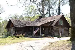 The Averitt House is a historic house in the rural central part of Miller County, Arkansas. It is a single-story log structure, located about 7 miles (11 km) south of Texarkana on the west side of United States Route 71. It was built in 1931-33 by Tom Averitt, the local health inspector at the time, and is a locally unique example of rustic log architecture. It is roughly L-shaped, with a shed-roof porch on its northeastern facade. A single fieldstone chimney rises through the roof near the junction of the L. The walls are made of unfinished logs joined by saddle notches. The logs for its construction were supposedly taken by clearing the site on which it stands. Not far from the house stands a garage, also built by Averitt from logs.[2]