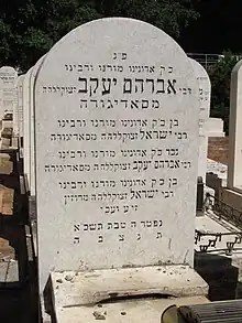 The Rebbe's wife died three years before him. He died on December 24, 1961 (5 Tevet 5721) and was buried in the Ruzhiner section of the Nahalat Yitzhak Cemetery in Givatayim.[2]