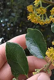Azara celastrina, also known as lilen, is a small tree in the family Salicaceae. It grows to a height of 10m and its native range is central Chile. The yellow flowers are in an axillary corymb, and the leaves are serrate, oval and alternate, with a length of 4cm. A. celastrina grows in semi-arid conditions up to 1000m elevation.[1][2]