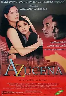 Azucena is a 2000 Filipino drama film directed by Carlos Siguion-Reyna. The film stars Ricky Davao, Glydel Mercado, Dante Rivero and Alessandra de Rossi on her theatrical debut. This also marks Anjanette Abayari's final theatrical appearance, albeit on a special participation role.[1][2][3][4]