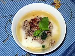 ![]() A bowl of northern Vietnamese bánh đúc thịt (bánh đúc with ground pork and fish sauce) | |