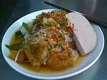 Bánh cuốn (Vietnamese: [ɓǎjŋ̟ kǔən], lit. rolled cake) is a Vietnamese dish originating from Northern Vietnam.[1]