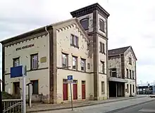 The listed entrance building is a stately plaster building erected in the so-called Maximilianstil (Maximilian style, a form of Gothic Revival). Its middle part dates back to 1847; the gabled house in the west as well as the staircase tower were added in the 1860s. The eastern wing was built around 1910. It is no longer has a significant use for railway operations.[5]