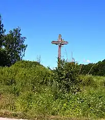 A wooden cross by the crossroad in Būdai