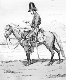 Although the column suffered heavy casualties from rifle fire during the withdrawal and was forced to abandon its baggage train, Dugenne successfully fought his way out of the threatened encirclement and extricated his small force. Captain Laperrine, the commander of Dugenne's small cavalry contingent, dismounted his troopers so that wounded men could be loaded onto the cavalry horses. The successful evacuation of the wounded was due in no small measure to the coolness with which Laperrine and his chasseurs d'Afrique covered the retreat.[17] During the withdrawal, Dugenne executed several of his own Tonkinese auxiliary troops for being routed in the first moments of the ambush.[18]