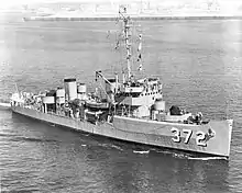 Redesignated MSF-372, 7 February 1955, she continued to operate off the west coast. She decommissioned 14 March 1957, and was assigned to the Pacific Reserve fleet. Struck from the Naval Register 1 December 1964, she was transferred 18 June 1965 to the Philippine Republic under the Military Assistance Program.[4][5]