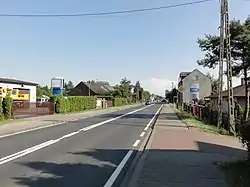 Following the invasion of Poland in September 1939, the village was occupied and annexed by Nazi Germany. In connection with the construction of the Auschwitz II-Birkenau death camp in nearby Brzezinka, in 1941, the occupiers expelled the entire Polish population of the village, which was initially deported to the nearby Pszczyna County, and afterwards either enslaved as forced labour or deported to the General Government in the more eastern part of German-occupied Poland.[3] A small subcamp of the Auschwitz concentration camp was located in the depopulated village from May 1943 to January 1945.[4] The camp was mainly for agricultural work on an SS farm. There were 159 men prisoners as of 17 January 1945, and approximately 180 women prisoners of the summer of 1944. After the war, the village was restored to Poland.