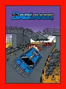 Badlands is a 1989 arcade video game published by Atari Games. It was ported by Domark under the Tengen label to the Amiga, Amstrad CPC, Atari ST, Commodore 64, and ZX Spectrum. The game is a re-themed version of Atari's previous racing games Super Sprint and Championship Sprint with the addition of vehicular combat. Badlands is set in the aftermath of a nuclear war and races around abandoned wastelands with many hazards. Three gun-equipped cars race around a track to win prizes.