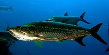 Birds on the bay include the brown pelican, particularly at La Guancha Boardwalk, and seagulls.[53] Among marine species the more visible one is the Atlantic tarpon (Megalops atlanticus), also easily spotted at Paseo Tablado La Guancha. The following are among two endangered species seen in the Bahía de Ponce:[54] the Antillean manatees, which are known to feed in the Bahía de Ponce, with most sightings occurring in the middle part of the Bay, near the Río Matilde estuary, and the brown pelicans, which forage and roost throughout Bahía de Ponce and will casually come onshore at La Guancha Boardwalk in search for food from people strolling by.[55] The brown pelican nests at Isla del Frío just to the east of Bahía de Ponce and roosts at the Punta Cucharas end of the bay.[56] The western sandpiper (Calidris mauri) roosts in the western portion of the bay (Punta Cucharas).[57] Also found in the bay is the roseate tern (Sterna dougallii dougallii), the piping plover (Charadrius melodus), and the Puerto Rican nightjar (Caprimulgus noctitherus).[58] Equally, the blue-winged teal (Anas discors), and the white-cheeked pintail (Anas bahamensis).[59]