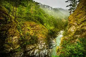 The Park belongs to the Luzon Biogeographic Region, a unique center of endemism in Luzon. It is composed of two mountain ranges within the Cordillera Central with numerous rivers and creeks all draining towards the Saltan River. Mount Sapocoy is the highest peak at 2,456 meters. It is located at the western boundary of the park overlooking the Ilocos and Cagayan Valley. The lowest point in the park, with an elevation of 700 meters, is at Balbalan in the eastern portion.[4]