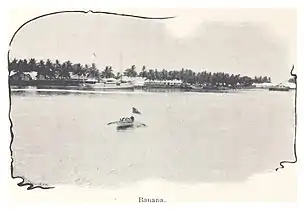Banana is a small seaport in the Kongo Central province of the Democratic Republic of the Congo on the Atlantic coast. The port is situated in Banana Creek, an inlet about 1 km wide on the north bank of the Congo River's mouth, separated from the ocean by a spit of land 3 km long and 100 to 400 m wide. The port is located on the creek side of the spit, which shelters it from the ocean. It is about 8 km south-east of Muanda to which it is connected by a paved road running along the coast.