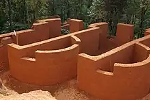 A considerable amount of research went in before deciding on the type of architecture to be used in construction. "Earth" architecture was chosen because it would cause the least amount of ecological damage while blending harmoniously with the micro environment around the site. "Earth" (mud) that is used for construction can be recycled indefinitely or left to disintegrate without causing any environmental degradation.