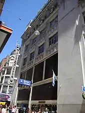 Located in a building that had been erected for a "A la Ciudad de México" store, on the corner of Florida and Sarmiento St., the structure was kept by the interior was totally remodeled, and display cases and marquees were open on the facade to showcase the items going up for auction and the bank activity to the walking public.