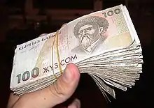 - 1 2 3 4 5 6 7 8 9 10 11 12 13 14 15 16 17 18 Olcott, Martha Brill (1997). "Kyrgyzstan: Financial System". In Curtis, Glenn E. (ed.). Kazakstan, Kyrgyzstan, Tajikistan, Turkmenistan, and Uzbekistan: country studies (1st ed.). Washington, D.C.: Federal Research Division, Library of Congress. pp. 159–160. ISBN 0-8444-0938-3. OCLC 36364151.