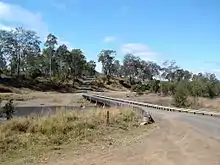 In 1927, flooding of the Brisbane River cut a deep channel in the river where Banks Creek Road crossed the river. A low-level bridge was built by Mr Davidson, junior, to enable traffic to cross.[5]