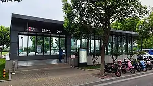 Baodaiqiao South Station (Chinese: 宝带桥南站; literally Precious Belt Bridge South Station) is a station of Line 2, Suzhou Rail Transit. The station is located in Wuzhong District of Suzhou. It started operation on December 28, 2013, the same time of the operation of Line 2.[1][2]